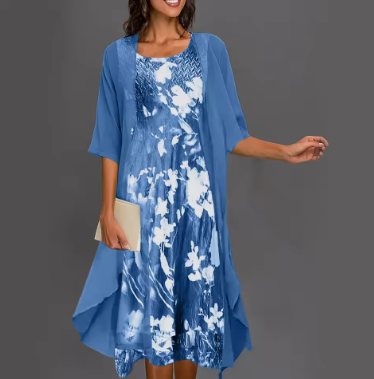 Questo abito è la scelta ideale per chi cerca un look femminile, versatile e comodo. Caratterizzato da una delicata fantasia floreale e abbinato a un coprispalle leggero, è perfetto per ogni occasione: una passeggiata, un pranzo all’aperto, una cerimonia informale o un evento estivo.
